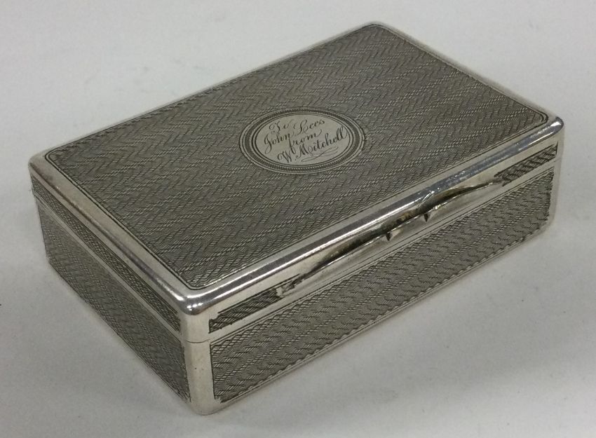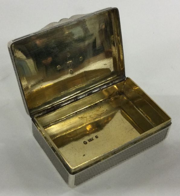 EDINBURGH: A Scottish silver engine turned hinged snuff box. 1874. By Thomas Johnson. Approx. 112 grams. Est. £250 - £350.