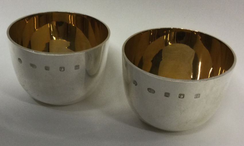 A pair of Britannia Standard silver tumbler cups with gilt interiors. Sheffield 2005. Approx. 186 grams. Est. £300 - £500.