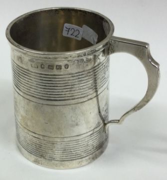 A Victorian silver barrel shaped mug. Birmingham 1870. By George Unite. Approx. 126 grams. Est. £100 - £150.