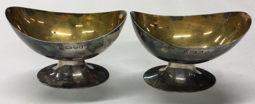 A pair of 19th Century Indian Colonial silver salt cellars with gilt interiors. Marked to body. Approx. 88 grams. Est. £200 - £300.