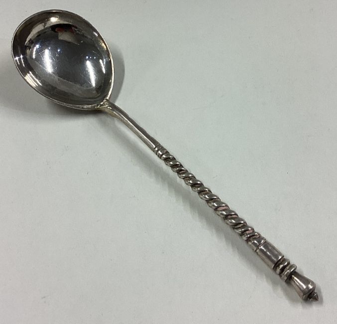 A heavy Russian silver spoon with engraved decoration. Marked 1888. Approx. 41 grams. Est. £60 - £80.