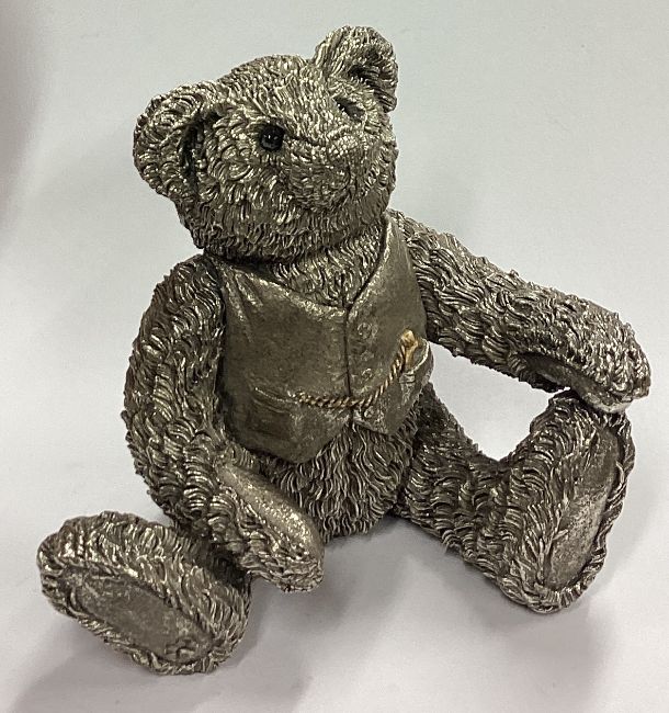 A large silver figure of a bear with pocket watch. 2000. Approx. 474 grams of gross weight. Est. £100 - £150.