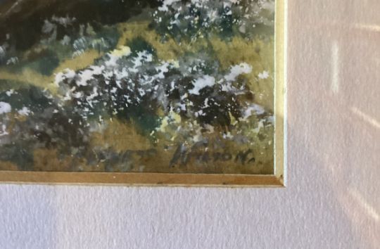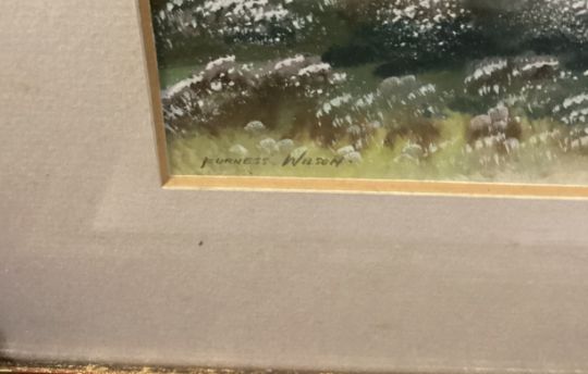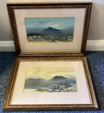 FURNISS WILSON: (British, 20th Century): A pair of gilt framed and glazed watercolours depicting mountain scenes. Both signed. Approx. 24cms x 14cms (ss). Est. £20 - £30.