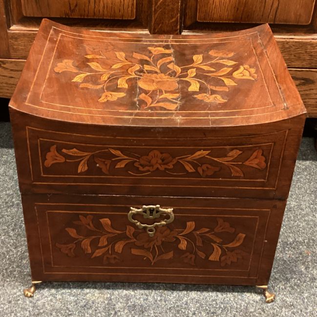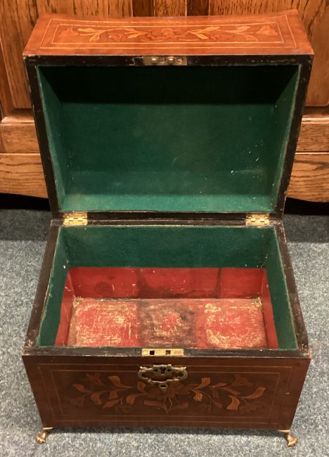 An early inlaid caddy of shaped form. Est. £80 - £100.