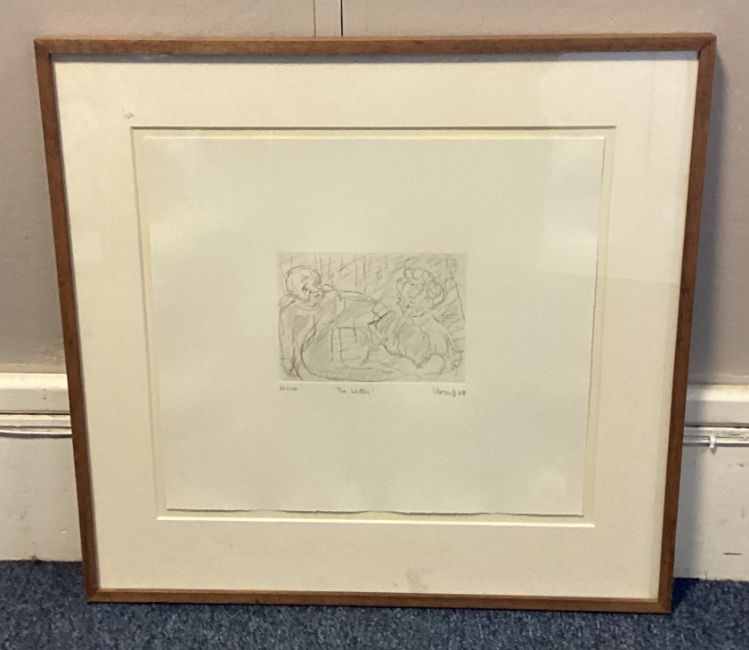 LEON KOSSOFF: (British, 1926 - 2014): A Limited Edition framed and glazed etching entitled 'The Letter'. Numbered 20 / 100. Pencil signed to bottom right and dated 83. Approx. 40.5 cms x 36.5 cms (ss). PROVENANCE: NOEL CHANAN. Est. £300 - £400.