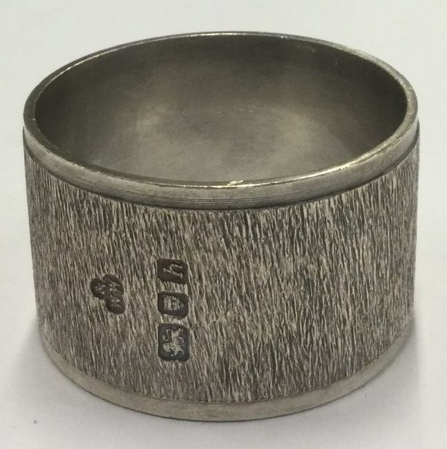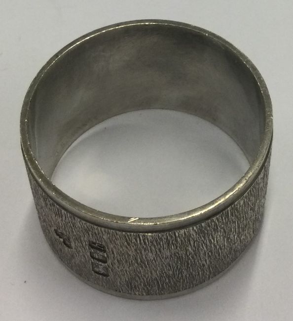 A silver napkin ring with bark decoration in the style of Gerald Benney. London 1963. By Wakely & Wheeler. Approx. 45 grams. Est. £40 - £60.