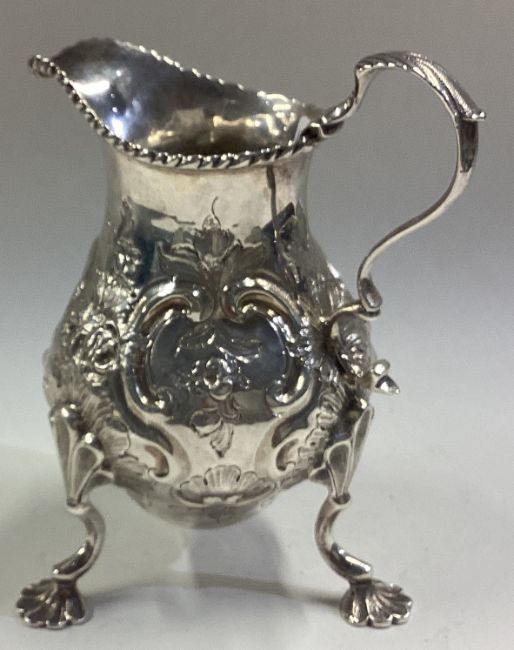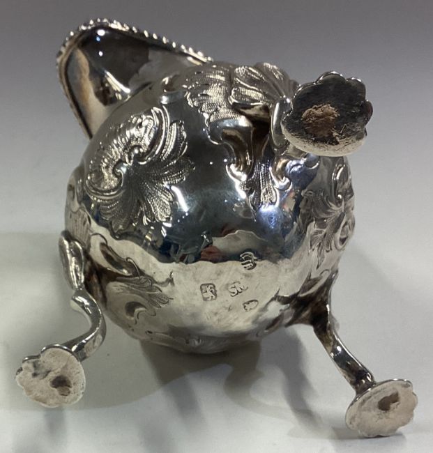 An 18th Century Georgian silver cream jug. London 1761. By SM. Approx. 114 grams. Est. £200 - £300.
