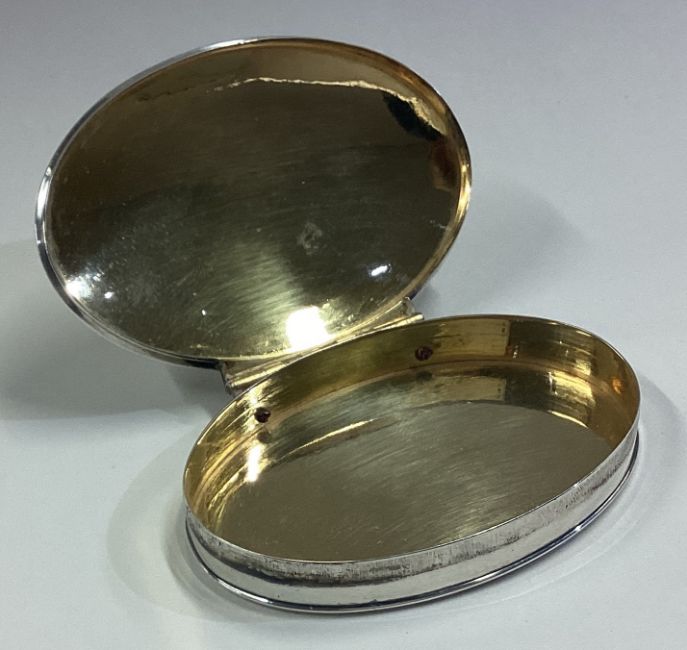An oval 18th Century silver snuff box with gilt interior. Circa 1730. Approx. 45 grams. Est. £250 - £300.
