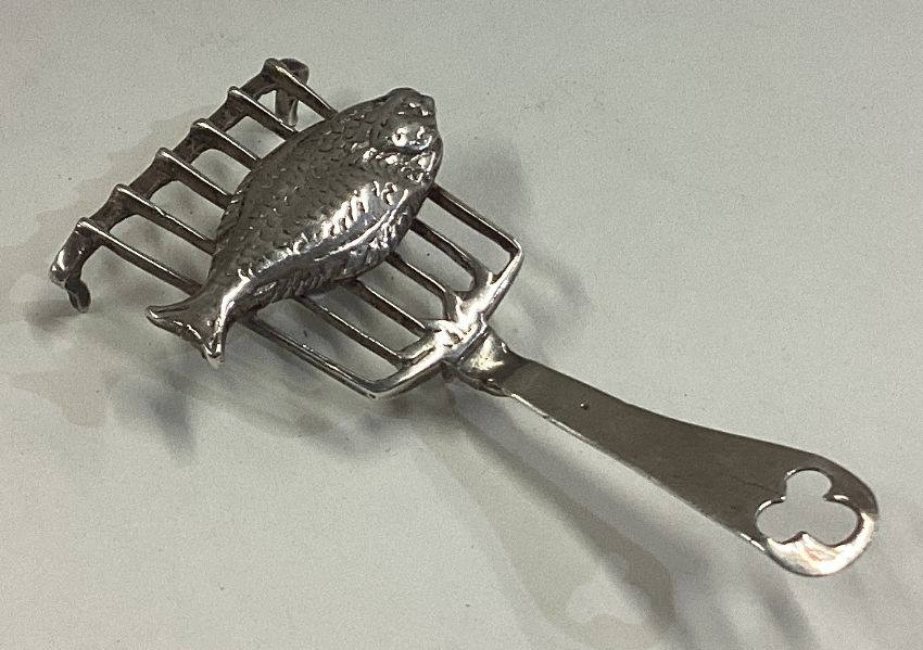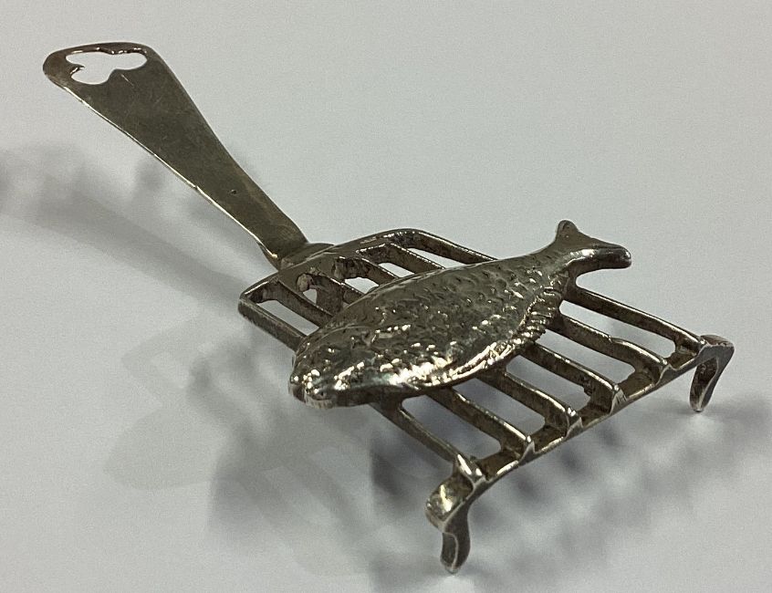 An 18th Century Dutch silver table toy in the form of a fish on server. Approx. 14 grams. Est. £80 - £120.