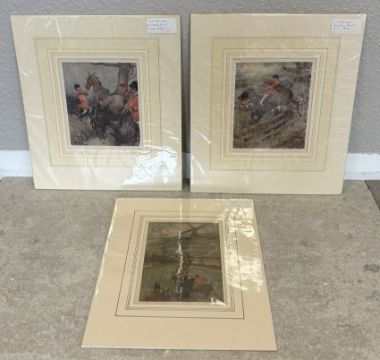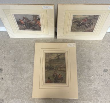 GEORGE DENHOLM ARMOUR: (British, 1864 - 1949): Three mounted prints depicting hunting scenes. Various sizes. Est. £20 - £30.