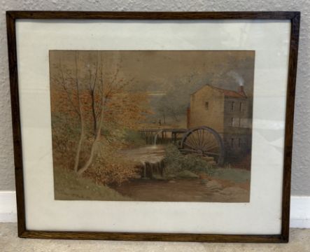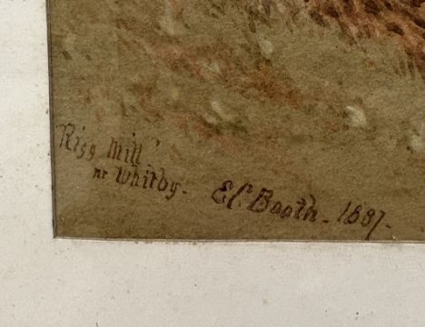 EDWARD C BOOTH: (British, 1821 - 1893): A framed and glazed watercolour entitled 'Rigg Mill nr Whitby' depicting an autumnal scene with an old mill and wheel by a stream. Signed to bottom left and dated 1887. Approx. 34 cm x 27 cm (ss). Est. £30 - £50.