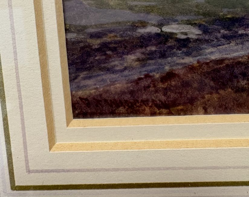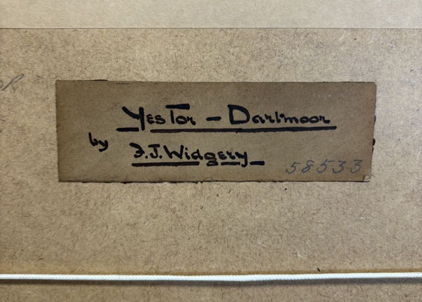 FREDERICK JOHN WIDGERY: (British, 1861 - 1942): A gilt framed and glazed gouache entitled 'Yes Tor, Dartmoor' depicting a typical Devonshire moorland scene. Signed to bottom left. Labelled and signed verso. Approx. 27 cm x 18 cm (ss). Est. £50 - £80.